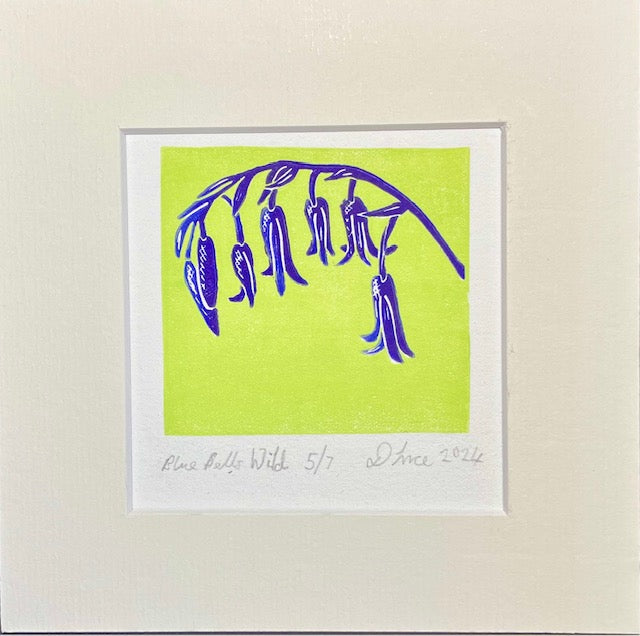 The mini prints an original design of mine and cut from traditional lino then handprinted to give that original feel of uniqueness.