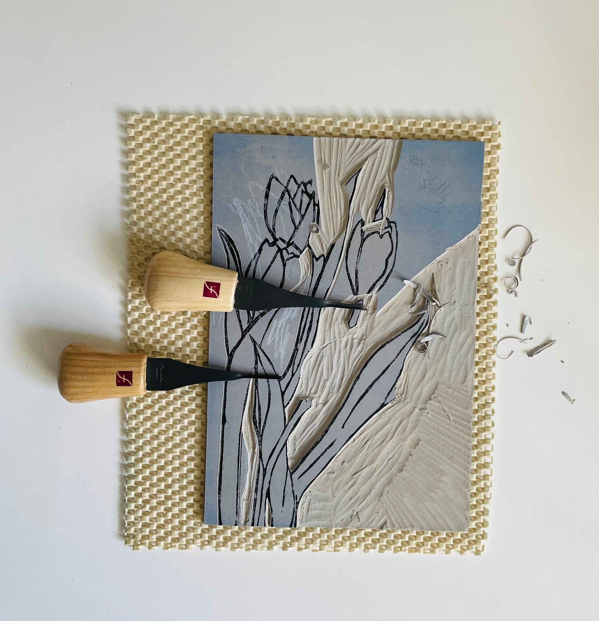 Tulips flower handmade original lino print